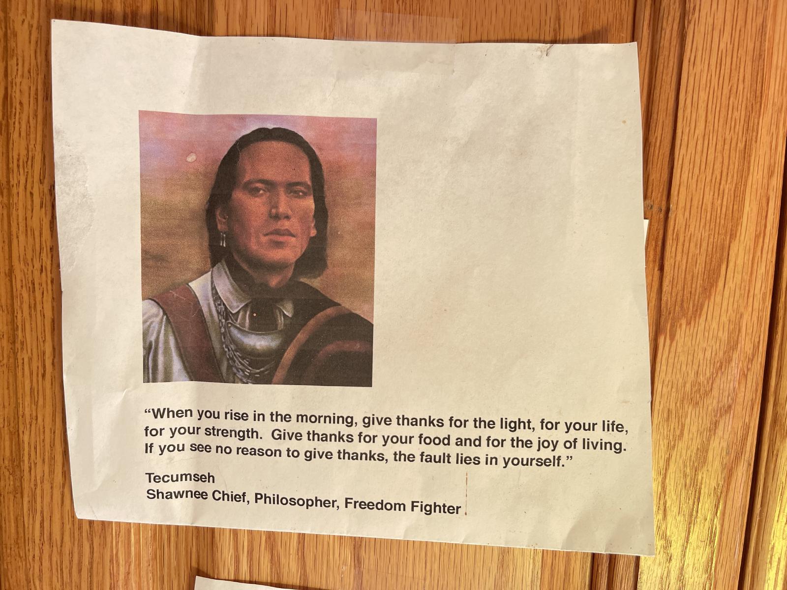 She’s always loved a good quote and often reminds us of the native people who have lived in the Midwest for millennia.
